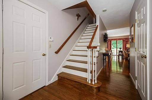 Welcome home to this beautiful end unit townhouse at Laurelwood II. This Harvard style floor plan offers an open floor plan perfect for entertaining. Hardwood floors throughout the first floor, spacious living room with fire place, separate dining area and a den/ home office/ or an additional 1st floor bedroom. Central air conditioning, 2 bedrooms, 2.5 baths, and a full basement ready for finishing. 1 car attached garage with direct access from the unit, composite rear deck overlooking woods.