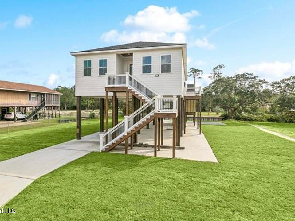 This beautiful 3 bedroom 2 bath home just feet from where the Jordan River meets Bay Saint Louis. Enjoy breathtaking views on your porch and lots of outdoor entertaining space below the home. A step down dock is put in for your convenience and ease to docking and loading up the boat. Open floor plan with lots of windows allow for an inviting airy feel to your living space. Come fall in love with One of Bay St Louis newest waterfront new construction.