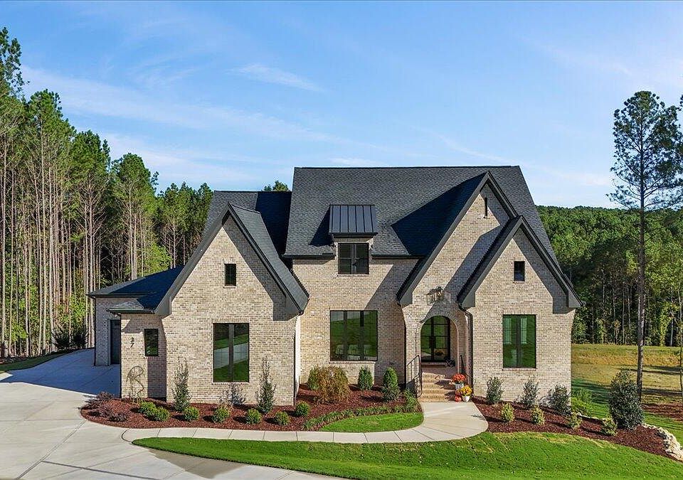 Maison des Arches - House of Arches - a 2025 Parade of Homes Silver Winner, is a stunning 5,253-square-foot custom residence nestled in the serene Firefly Overlook at Jordan Lake, a boutique community of just 30 acreage homesites. Spanning nearly 2 acres of pristine land, this elegant home backs up to a picturesque stream and is within strolling distance of Jordan Lake's shimmering shores, blending natural beauty with privacy. The classic exterior boasts a custom arched iron front door, setting the tone for the cohesive, arch-inspired design throughout. Inside, the home features 5 spacious bedrooms and 6 luxurious bathrooms, with 3,291 square feet on the first floor and 1,962 on the second, plus 351 square feet of unfinished potential and an 887-square-foot garage for room to grow. A formal dining room with a coffered ceiling connects to a butler's pantry and wine display, while the striking study impresses with vaulted ceilings and arched bookcases. The gourmet kitchen, complete with an oversized island, quartz countertops, and a scullery, flows seamlessly into a spacious family room with arched built-ins and sliding doors to a screened porch with a fireplace. The owner's suite offers a spa-like bath with a steam shower, and thoughtful extras include herringbone hardwood floors, a dog washing station, and a second-floor gym. Ideal for nature lovers yet close to modern amenities, Maison des Arches is a rare opportunity to shape your legacy. Contact the agent today for details!