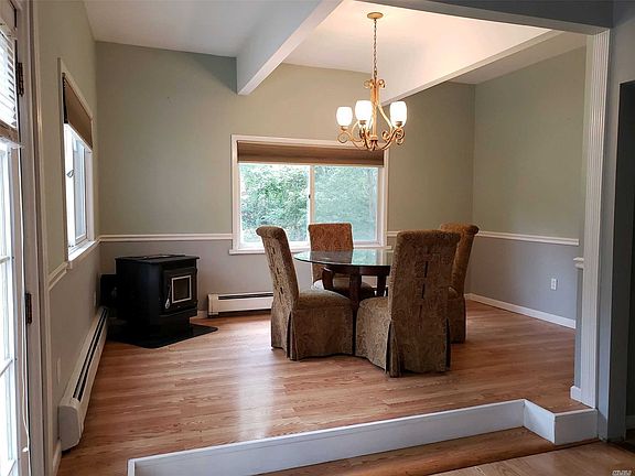 Beautiful Ranch in Miller Place SD just steps from Woodhull Landing Beach & 64 Acres of NYS Open Land Preserve. Perfect for hiking, dog walking, etc. Entry Hall to open Eat-in-Kitchen,Formal Dining Room w/Pellet Stove,Living Rm w/Sliding Doors to large Deck,Oversized Master Bedroom,2 Additional Bedrooms,Full Bath,Attic Storage. 9ft ceilings throughout,freshly painted,5 yr-Oil burner,tank,Cesspool,Roof, AC,Pellet Stove. Fully fenced property. Sold ""AS-IS