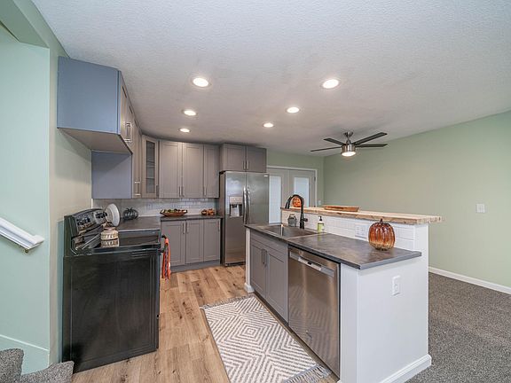 NEW paint & flooring (luxury vinyl plank and carpet) throughout. Beautiful NEW baths including ensuite with walk in shower. Additional two bedrooms & main bath round out upper level. Kitchen with appliances & modern cabinetry. Island with eating area/breakfast nook & dining room.