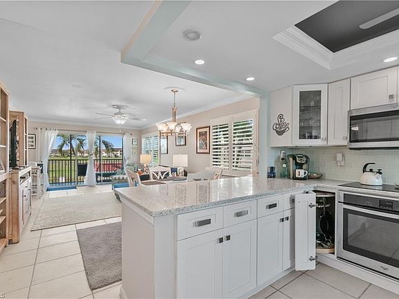 NEW Pictures!!! Rare RENOVATED CORNER UNIT with views of pool, golf course and water feature. Open kitchen has white cabinets, newer stainless appliances. Enjoy neutral tile floors, updated windows and doors, updated A/C and hot water heater and plantation shutters on all windows. The hot water heater and new electric panel have been upgraded in 2025. The building has a new roof and a generator for outside lights and for the 2 elevators. The owner has lovingly maintained this unit. This is a rare opportunity and a Must See! Low quarterly fee includes wi-fi, cable, water, sewer, trash, all amenities including FREE golf, tennis, pickleball, 6 pools, clubhouse with gym, pro shop and restaurant plus 6 pools and just 1 mile to beach! Enjoy a full activity calendar, a restaurant in season and the friendliest CC in Naples. High Point CC is a hidden gem just 1 mile to the beach, famous 5th Ave, restaurants and shopping are minutes away. Location, location. See it now and discover the "hidden gem of Naples".