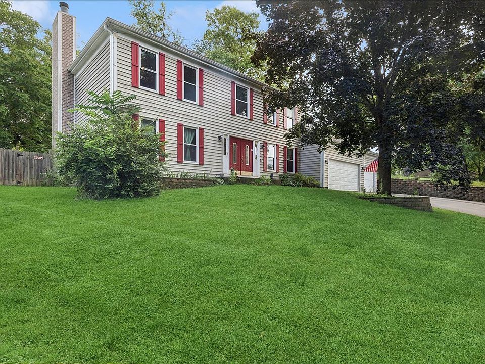 WOW! Spacious & Stunning 2,360 sq ft, 5 bedroom / 3.5 bath home just minutes from the Chain available NOW! Boasting 2,360 sq ft above grade, & not including the mostly finished basement, this home has the features & improvements you're looking for! Wood flooring on most of the main level. Zoned HVAC! Living room w/ dramatic barn slider doors making the perfect 1st floor office. Large formal dining off the kitchen. Bright family room leading from the kitchen w/ beautiful crown molding, fireplace & in-ceiling speakers. Large eat-in kitchen featuring lot's of cabinetry & counter space, countertop overhang w/ seating for 4 & an amazing view from the breakfast room of the stunning grounds outside! Main level 5th bedroom, too, w/ newly installed luxury vinyl flooring. Primary retreat is grand, featuring a luxurious bath w/ gorgeous oversized tumble stone look tile composing the oversized shower & 2 person tub surround, as well as wood plank porcelain floor tile, two sinks w/ a bank of drawers in vanity & framed medicine cabinet mirrors. Primary walk in closet is finished w/ stunning closet organization. Bedroom 2 & 3 w/ closet organization & bedroom 4 featuring newly installed luxury vinyl tile. Guest bathroom is freshly painted & features a jetted tub, dark shaker vanity & contrasting dark tile w/ listel border & niche in shower! Mostly finished basement w/ bar, amazing 3rd full bath, huge rec room, gym, laundry & plentiful storage! HEATED 3 car garage with room for your toys & more! Spacious double lot offers a fenced in backyard retreat, incl a paver patio, putting green, fenced in dog run, firepit, 2 sheds & lot's of room to roam! Improvements: Furnace 1 2020, Furnace 2 2021, TANKLESS Hot Water Tank 2023, New gutters 2022, 2nd fl A/C 2021, New disposal, New GE Top Control Dishwasher 2025, New Sump Pump 2024, Whole house water conditioning system w/ lifetime warranty 2023, New 2 car garage door & MyQ Opener 2022! Take a tour today!
