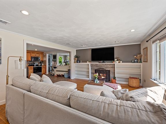 Set in Wakefield’s Dolbeare neighborhood near Lake Quannapowitt, this custom 4-bed ranch blends single-level ease with flexible bonus space. Sun-splashed living room with hardwoods and a wood-burning fireplace flows to an updated eat-in kitchen with stainless appliances and built-ins. A bright first-floor dining room opens onto the level backyard—perfect for everyday living or entertaining. The finished lower level adds a large fireplaced bonus room, full bath, and laundry. A walk-up attic offers room to expand. Include new central A/C and garage. All moments to Dolbeare School, the commuter rail, Wakefield’s downtown shops and dining, and swift access to Rts 1/95/93. Move right in and enjoy a home framed by mature trees, timeless curb appeal, and a location that checks every box.