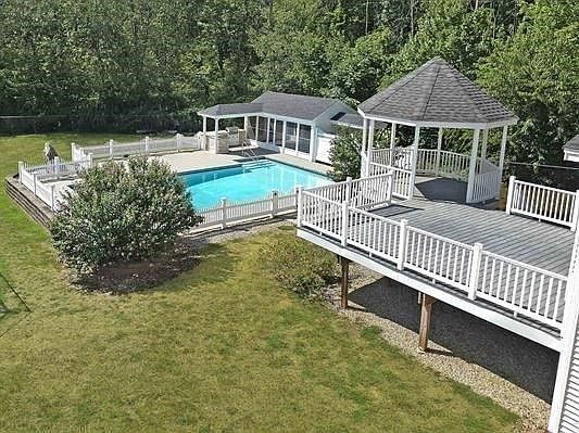 ONE OF A KIND!!! Luxury, privacy & convenience! Plus a barn for the horse/animal enthusiest, 3 car detached garage heated gunite salt water pool! This 5,500 sq. ft., 4BR/4BA home w/ 5 secluded acres at the end of a cul-de-sac is just 30 min to Manchester, 45 to the Seacoast, & under 1 hr to Boston. Features include a chef’s kitchen w a massive center island, high-end appliances, and granite. The primary suite offers a whirlpool bath & double sided fireplace, walk-in closet & private balcony. Additional bonus space available w/ unfinished third floor & an added bonus of the finished basement. Outdoors, enjoy the pool, pool house, & indoor/outdoor kitchen—perfect for entertaining. Hobbyists/car enthusiasts will love the 6 garages, 3 in a detached bldg w/ a high bay door. Animal lovers or gardeners have a great barn w/ 3 stalls, paddock, riding arena, and unfinished 2nd floor. Some photos enhanced.