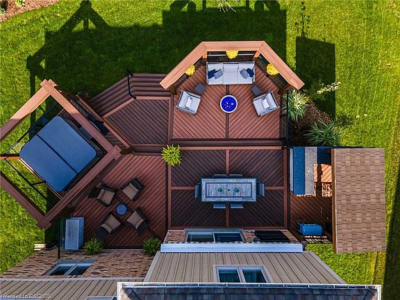 This beautifully maintained 4-bedroom, 4-bathroom back split boasts 2,969 square feet of luxurious living space, offering the perfect blend of elegance, comfort, and functionality. As you step inside, you'll be immediately captivated by the soaring 20' vaulted ceilings and open concept living, dining and kitchen, the hardwood flooring throughout adds a touch of warmth and sophistication to the space. For cozy evenings in, the lower-level living room features a stunning floor to ceiling marble gas fireplace and brand new flooring installed in 2024. The highlight of this home is undoubtedly the expansive multi-level 900 sq. ft. composite back deck, which serves as your own private oasis. Entertain family and friends in style with an outdoor kitchen, perfect for those summer BBQs. Relax and unwind in the sitting area while taking in the beautiful views of the backyard. And for those who crave ultimate relaxation, the hot tub area is your sanctuary, offering ultimate tranquility after a long day. Enjoy the convenience of being close to top-rated schools, shopping, dining, and outdoor recreational activities. Whether you're hitting the slopes in the winter or exploring the beautiful trails and beaches in the summer, Collingwood offers year-round fun for all ages.