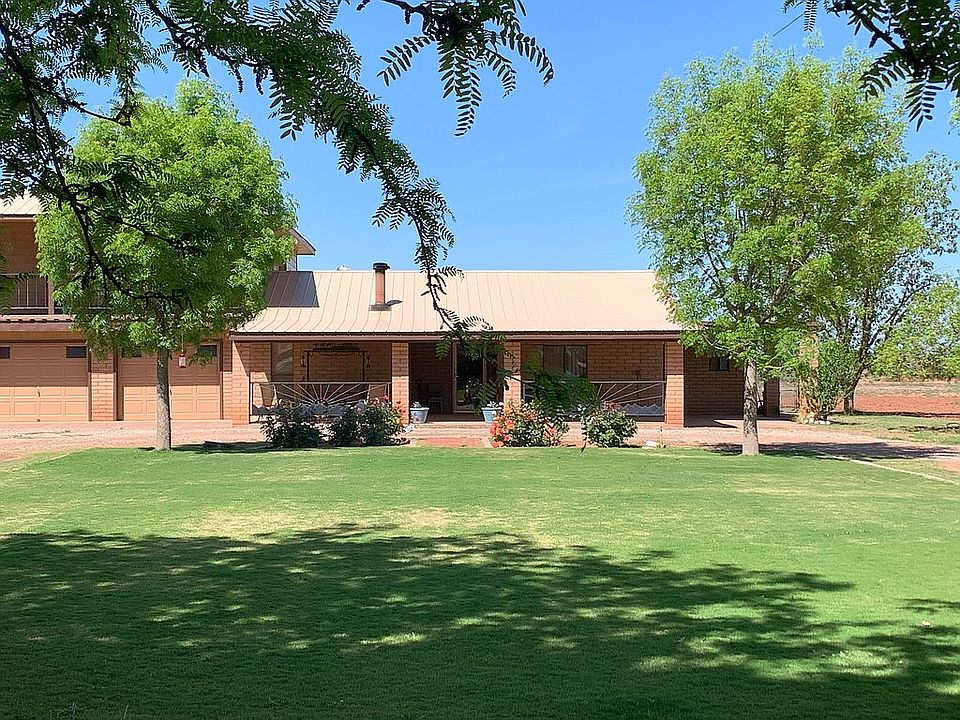 2176 sq ft, one and one half story site built home on 7.482 acres. Fully fenced with electric entrance gate. Three bedroom, 2 bath, kitchen, dining, living room with airtight wood stove. Kitchen remodeled in 2012 with custom maple cabinets, granite counter top, and stainless steel appliances. Custom tile/carpet. Low maintenance exterior: bottom floor is brick while upper floor is wood look lap steel siding. Steel roof and aluminum soffit. Central heat and refrigerated air. Attached 24 x 21 two car garage. Attached outside access laundry room with covered car port. Large covered deck off master suite with views of Sacramento mountains and Sierra Blanca. Great horse property with two domestic water wells. Shop #1 is 2600 sq ft insulated metal building with14 foot side walls. One 10 ft overhead door, one set of 14 ft x 16 ft side by side sliding doors, and two walk doors. Concrete floor. Additional 400 sq ft covered work space with concrete floor. Shop #2 is 1500 sq ft insulated metal building with 12 foot side walls. One 12 ft x 12 ft roll up door and one walk door. Concrete floor. Has covered concrete apron on two sides measuring 12 ft x 30 ft and 15 ft x 62 ft. 192 sq ft pump house with concrete floor and exterior to match home. Houses pressure tank and provides storage and work space. 2 water storage tanks; 1000 and 1600 gallon capacity. Established yards, trees, irrigation system. Additional items available: Maintenance equipment. Can sell home furnished. Zillow estimate does not include value of shop #2