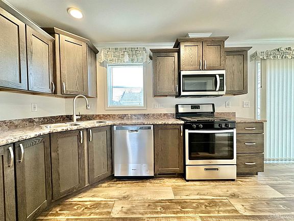 This NEW 3 Bedroom Ranch Style Home offers easy, main floor living. Located in the Lake Bluff Retirement Village, this 55+ community offers a very safe and peaceful setting. Upon entering the home, you will be quick to notice the beautiful finishes and modern colors that this home has. The spacious living room, the eat-in kitchen with island and stylish cabinetry, Whirlpool stainless steel appliances, and dining area are open to one another. Great floor plan with two bedrooms on one end, and the primary bedroom on the other. The Owner's Suite features a large walk-in closet, and a full bathroom with dual bowl vanity and a gorgeous low curb custom walk-in shower! There is a site prepared for you to have an attached garage built to your liking in the future. The community clubhouse has regular events and gatherings, and is available for private get togethers by reservations to residence of the park. Check out the virtual tour, or schedule your in person showing today!