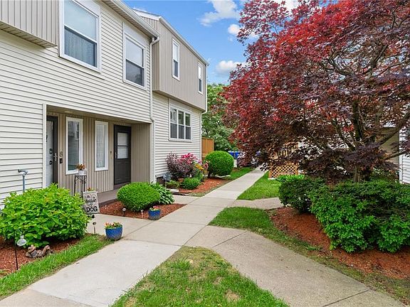 Welcome Home to this crisp, clean and nicely updated townhouse condo in Kiley Square! This end unit townhouse boasts gorgeous hardwoods throughout the entire unit, a nicely updated kitchen with granite countertops and white shaker cabinets and two generously sized bedrooms. The first floor features a desirable open floor plan with countertop seating in addition to a dining area right off the large living room. Rounding out the first floor is a convenient half bathroom, vinyl windows and built in wall unit A/C. Upstairs features two nicely sized bedrooms and updated full bathroom. Off the primary bedroom is a porch to enjoy a morning coffee or nightly read. The square footage of the home extends in the basement where you have additional finished space to make it whatever you need - an office, play area, rec room etc. Townhouses, especially end units in this complex dont come around often so dont miss your opportunity to capitalize on this great opportunity! Association Fee INCLUDES: water, sewer, landscaping, master insurance and snow removal! FAILED SEALS ON 2 SLIDERS WILL BE FIXED PRIOR TO CLOSING!! Nothing to do but move in!