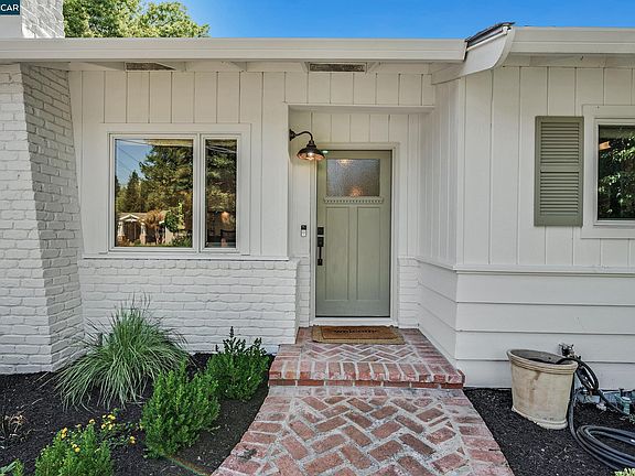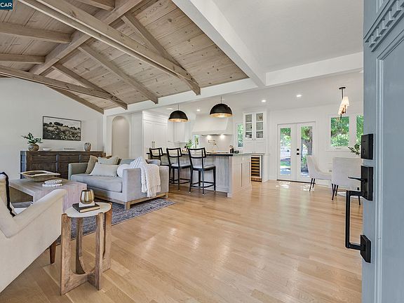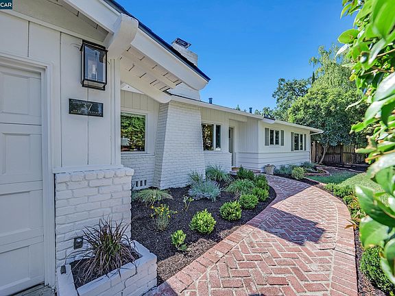Stunningly remodeled Westside Danville rancher originally built by Harold Smith. Serene court living on a majestic .44 acre lot offering ultimate privacy in a park like setting. Beautiful curb appeal welcomes you and sets the tone for the entire home. Featuring 4 bedrooms, 2 bathrooms, and exquisite designer updates throughout, this home will take your breath away. Expansive living room has vaulted wood beam ceilings, brick fireplace and tons of natural light. The perfectly appointed chef’s kitchen boasts two tone shaker cabinetry, black soapstone countertop island with reeded back paneling and breakfast bar, Monogram 6 burner gas range with griddle and dual ovens, wine fridge, and eat-in kitchen nook. Impressive designer details in every bedroom including wainscotting, chandeliers and light fixtures. Spectacular guest bathroom uniquely styled with intricate pattern and color mixing with dual vanities and a vertically tiled shower over tub. Primary bedroom hosts a distinctive light fixture, a sliding glass door to the yard and has a spa-like ensuite bathroom. The sprawling, private backyard oasis is perfect for entertaining or for endless hours of relaxation. Phenomenal location in close proximity to downtown Danville, Iron Horse Trail, Hap Magee Park and top rated schools.