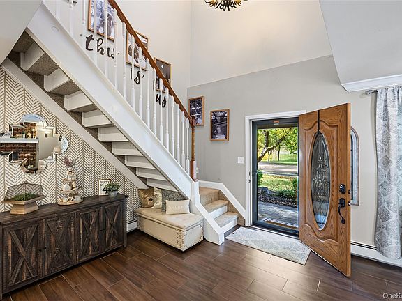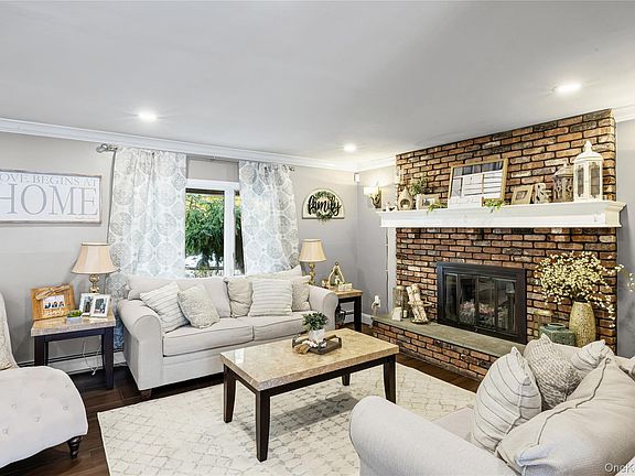Welcome to this beautifully maintained Colonial located in the desirable Village of Lake Grove. Conveniently situated near local parks, shopping, major highways, and hospitals, with natural gas available, this home offers the perfect balance of comfort, style, and location. Step inside to find a warm and inviting interior featuring new first-floor windows that fill the home with natural light. The first-floor primary ensuite provides added convenience and flexibility. Entertain in the formal dining room, relax in the den with a wood-burning fireplace, or gather in the sun-filled kitchen showcasing a large bay window seat, oversized island, stainless steel appliances, and a spacious pantry. A large living room with a built-in bar and sink make this home ideal for everyday living and entertaining. Upstairs, you’ll find a half bath and three generously sized bedrooms, including a grand primary suite featuring a wood-burning fireplace, new skylights, a luxurious walk-in closet with custom built-ins, and a large primary bathroom with dual vanities, a walk-in shower, and a jetted soaking tub. Step outside to your private backyard retreat. Enjoy a gunite chlorine pool, marble dusted in 2025 with a new filter installed in 2024. The pool area is fenced and enhanced with pavers, built-in bench seating, pool lighting, exterior lighting, outdoor speakers, and lush landscaping. The fully fenced backyard offers raised garden beds, mature privacy plantings, and a double gate for additional parking. A two-car detached garage with an electric door opener provides additional convenience and storage. The home also includes a security system for peace of mind. This stunning property won't last long!