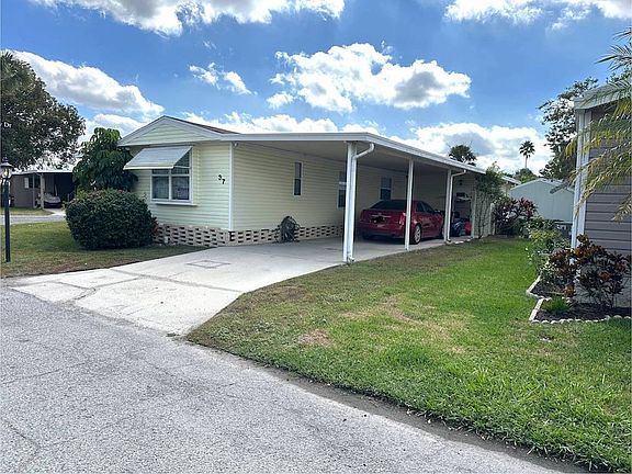 STEP INTO THIS BEAUTIFULLY MAINTAINED 2-BEDROOM, 2-BATHROOM MOBILE HOME THAT OFFERS COMFORT AND CONVENIENCE! Inside, the home has a fresh, newly painted interior that feels clean and welcoming. The kitchen features a water filtration system, and the home also includes newer duct work to help maintain efficient airflow and comfort throughout the year. Double pane windows provide energy savings and help keep the home quiet and comfortable. The exterior has updated vinyl siding, giving the home a clean and modern look with low maintenance. Located on a desirable corner lot, you'll enjoy extra space and privacy. The community also features a brand-new fishing lake, perfect for relaxing, enjoying nature, and spending time outdoors. This home has been cared for with pride and is move-in ready for its next owner. **Home is being sold as furnished, as described. Anglers Green is an active 55+ community in Mulberry, FL. 80/20 rule applies where residents must be 45+. Community Pool and Hot Tub. Nine-hole golf course. Private fishing lake. Shuffleboard courts. Pets welcome (2) under 40 pounds with breed restrictions. Motorcycles allowed. Storage available in park. Lot rent is $715 monthly. Water Use Tax is $186 annually. Measurements are L x W KITCHEN: 11 x 12 Laminate Flooring Window Coverings Chandelier Refrigerator - Whirlpool with Ice Maker Range - GE Microwave - Galaxy - Built-in Wood Cabinets Pantry - 1 Eat-in Kitchen - Table with 4 Chairs LIVING ROOM: 13 x 12 Laminate Flooring Window Coverings Ceiling Fan with Light Sofa Rocker Recliner - 1 Coffee Table - 1 End Table(s) - 2 Lamp(s) - 2 HALLWAY: Linen Storage MAIN BATH: 7 x 7 Ceramic Tile Flooring Single Sink Walk-in Shower Mirrored Medicine Cabinet Comfort Height Toilet Linen Storage PRIMARY BEDROOM: 11 x 12 Laminate Flooring Window Coverings Ceiling Fan with Light Closet: Walk-in: Standard Queen Size Bed Bedside Table(s) - 1 Dresser - 1 PRIMARY BATHROOM: 4 x 7 Laminate Flooring Single Sink Walk-in Shower Mirrored Medicine Cabinet Comfort Height Toilet SECOND BEDROOM: 10 x 10 Carpet Flooring Window Coverings Ceiling Fan with Lights Double Size Bed Bedside Table(s) - 1 Dresser - 1 TV SCREEN ROOM: 17 x 9 Concrete Flooring Patio Table Set Located Off: Living Room SHED/LAUNDRY: 13 x 11 Concrete Flooring Washer - Samsung Dryer - Whirlpool Shelving EXTERIOR: Vinyl Siding Double Pane Windows Gutters Single Carport Roof Type: Shingle AC: Rheem (2023) Golf Cart Included Vehicle - 2010 Cadillac CTS 140,000 miles - being sold separately $1,400.00 COMMUNITY: Gated Community Heated Swimming Pool Hot Tub Clubhouse with Community Room Shuffleboard Courts Nine-Hole Golf Course Fishing Lake The above information and the condition of this property is not guaranteed. Listing description is based on information provided by the Seller. All measurements are approximate. It is the Buyer's responsibility to confirm condition/age and all measurements. Current fees, current lot rent, rules and regulations, or pass-on costs associated with this home, and particular park should be confirmed, by the Buyer, with the community office. This mobile home is sold in "As Is" condition with no warranties or guarantees.