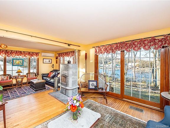 WATERVIEW TAXES WITH WATERFRONT VIEWS Panoramic and unobstructed. Treat yourself to waterside dining or sip cocktails on your deck to watch the flotilla of boats and kayaks from nearby Three Belles Marina. A rare opportunity to make this year-round 3 bedroom, 2 bath freshly painted New England style home requiring NO FLOOD INSURANCE, your sanctuary. Open floor plan with refinished Oak wood floors through out, sliding doors to cove side deck, two ventless mini splits or enjoy the comfort of the radiant heat of a Scandinavian design soap stone fireplace. Kitchen sports Quality hickory cabinetry, granite countertop, stainless appliances, custom built-in buffet for easy entertaining. Complete with walkout basement, single bay garage, and established gardens. Pine Grove is a beach community in NIANTIC with playground, horseshoe & basketball court, ball field, gazebo, two public docks and two private beach areas, the perfect location for fishing, boating and kayaking on the Niantic River. Plenty of on-site parking for guests to participate in our annual picnic, field day, movie nights. Located a mile from seaside village that boasts excellent schools, children's museum, movie theater, boutiques, antiques, two ice cream parlors, organic market and phenomenal restaurants. DO NOT MISS OUT ON THIS TURN-KEY HOME WITH WATER VIEW TAXES NO FLOOD INSURANCE REQUIRED.