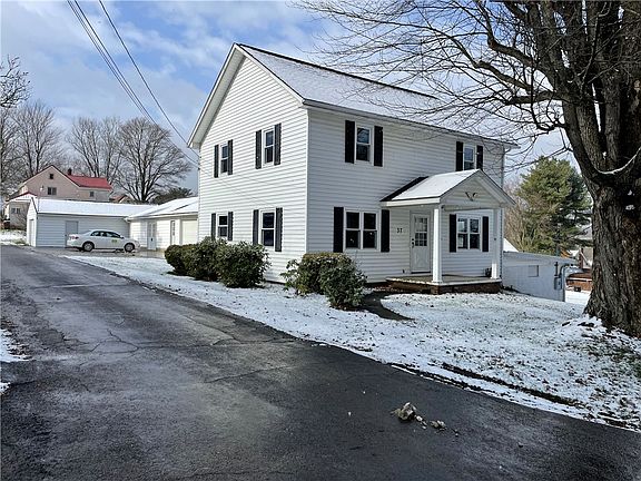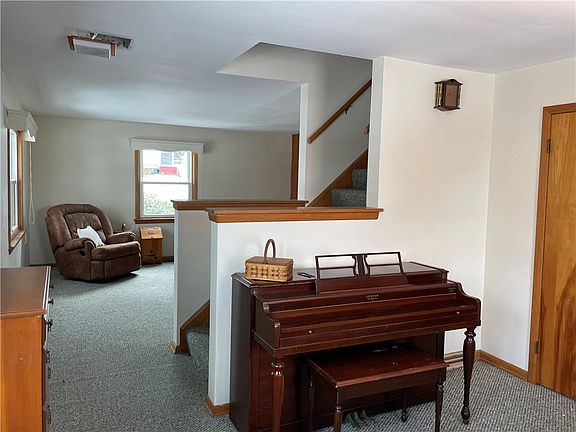 This 4Br home has so much to offer! New windows, HW throughout, very nice woodwork, main laundry, breezeway/ mudroom. Finished 3rd floor is perfect for man cave, teen bedrooms, crafts, etc. Lower level walk out building was previously set up for a business w separate electric. Finished heated 31x24 2 car garage w fireplace perfect to gather for holidays and picnics. Plus an apartment attached which can be man cave, family fun room, in law suite. Money making opportunity can be used as an apt, has its own full bath, kitchen, separate heat and electric. Extra 24x31 det. garage served as a workshop w its own electric. Deck overlooking peaceful lot in quiet area of Fredonia. So much potential in one property , Come view and envision the possibilities! Home Warranty