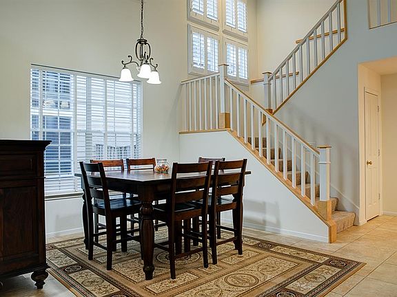 Beautiful home with a swimming pool in Alden Bridge. Covered front porch, two story entry, private study, open living spaces, gameroom, 5 bedrooms, 2nd story balcony & covered back porch. Kitchen features island, upgraded Silestone countertops & it opens to family room w/gaslog fireplace. Remodeled master bathroom with frameless glass shower, custom vanity with granite countertop, travertine flooring & in shower. Fresh interior paint, new carpet.