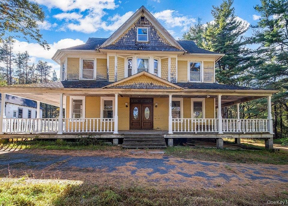 Nestled on over 11 acres of serene, wooded land in a peaceful Sullivan County community, this classic 6-bedroom, 1-bath Victorian stands as a testament to timeless architecture and untapped potential. With its stately facade and symmetrical lines, the home whispers stories of generations past, waiting patiently for someone to restore her grace and reveal her inner beauty.