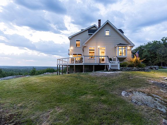 Overlooking a wide, bucolic valley with spectacular views of the White Mountains, including Mt. Washington, this home and setting are nothing short of awe-inspiring. Abutting a forever organic farm with open vistas, mature trees and bare ledge every room enjoys amazing views. Built to the highest standards in 2005 the home was transformed into a modern marvel over the last few years. The open-concept living area is a large space perfect for relaxing or entertaining. The redesigned kitchen is spacious and impressive with an expansive island, wet bar, custom cabinetry, walk-in pantry, and new chef inspired appliances. Immediately off the kitchen is the south / southwest facing deck that's the perfect perch for spectacular sunsets. Upstairs, the octagonal turret with panoramic views makes for a truly unique focal point for the primary suite with en-suite bathroom and dressing room. Also on the 2nd floor, find two additional bedrooms, a full bathroom, sitting area, laundry room, and office/bonus/bedroom. The interior isn't complete without mentioning the climate controlled gym/workshop, 4-5 bay attached garage, and potential for easy expansion on the 3rd floor (add bedrooms or even a guest/in-law suite). Of course the systems are state-of-the-art from super efficient heat and air conditioning to the low/no maintenance exterior and new roof. This is beyond turn-key and akin to pure perfection. Set on 30+/- pristine and private acres with 2 barns, artisanal hardscape, hiking trails and your very own pond, what makes Maine memorable is immediately outside your door. Although the setting is private it's also convenient and just 20 minutes to Portland, the Jetport, or Sebago Lakes Region.