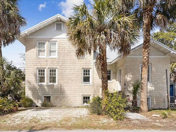 The former Coquina Inn, in Lighthouse Park neighborhood, a historical treasure offers a unique opportunity steeped in history. Built in 1915 by Mary Heston, the Post Mistress of Anastasia Island. It was once a winter retreat for Arthur Brisbane, Chief Editor of W.R. Hearst. Constructed with Tabby Revival architecture of coquina block, this home embodies cultural significance backed with resilient construction. With 4 bedrooms, 4 bathrooms, & an adjoining apartment with separate entrance. Inside, it features original hardwood floors, 2 fireplaces (primary has hidden nook), crown molding, & beadboard ceilings. 1,700sf unfinished basement with separate entrance, a cistern & other eccentricities. The primary suite is complete with a sitting area & fireplace with a hidden nook. Elevated in Flood Zone X. With a touch of vision & restoration, the grandeur can be revived to live amidst history. 2nd floor hallway light does not convey. Weekly rentals allowed, buyer to verify.