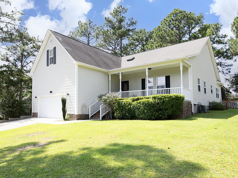 Here's your opportunity to own in the amenity rich community of Carolina Lakes. 3BR/2BT Ranch home w/2-car garage. Covered rocking chair front porch. Bonus Room over garage offers great flex space. Large living room, kitchen has new appliances, Pretty light filled dining room that opens to a gorgeous new sunroom that will become your favorite space looking out to the private fenced backyard. When you're not enjoying home, there's golf, swimming, boating, fishing, basketball, tennis, pickle ball, playgrounds all within your very own gated community.