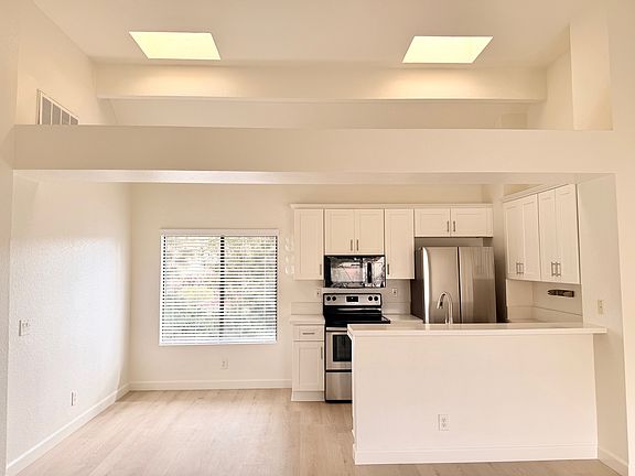 Beautifully nestled with peek-a-boo-mountain views from most of the windows in the home; the residence offers a seamless blend of comfort, convenience, and nearby coastal living. The open and airy floor plan are accentuated by natural light streaming through large windows and two skylights in the kitchen and dining area. The updated kitchen features new cabinetry and stainless steel appliances, creating the perfect space for entertaining or preparing meals. The living area opens to a private balcony where you can enjoy your morning coffee or evening sunsets. The primary suite is a serene retreat with a spacious closet and an en-suite bathroom. A second bedroom and bathroom add flexibility for guests, a home office, or additional living space. 1 designated carport and permitted parking available with HOA approval. Step outside and explore the abundant amenities surrounding your home. Crystal Cay residents enjoy access to two resort-style pools and spas, dog run and nearby hiking and biking trails that can lead you to the picturesque Salt Creek Beach and Dana Point Harbor. This home is minutes from world-class shopping and dining, award-winning schools and easy freeway access. Whether you're looking for an active lifestyle or a peaceful retreat, 37 Martinique offers it all. Owner pays for water. Tenant pays for electricity & gas, & other services. One year lease with deposit of one month's rent due at signing, plus a $600 cleaning deposit. Pets allowed, with additional cleaning deposit of $100 per pet.