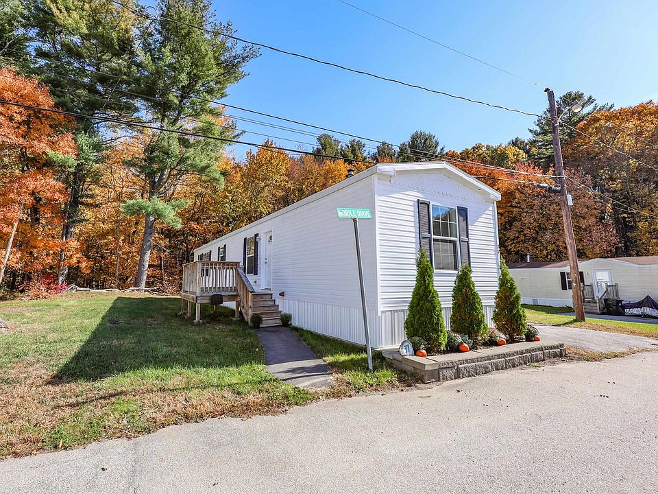 Welcome Home to 37 Mobile Drive in beautiful Hudson NH! This meticulously maintained, 3 year old home is situated on an oversized lot that abuts peaceful woodlands. Enjoy grilling & having a beverage on your large deck listening to the birds chirp away. Upon entry you will find a spacious open concept kitchen/dining area with plenty of cabinetry for ample storage, complete with stainless steel appliances. Extending beyond the kitchen you have your large living room perfect for entertaining your guests or just relaxing on the couch with a cup of coffee. The large primary bedroom boasts its own private full bath and walk in closet. Just down the hallway to the front of the home you have another full bath and 2nd bedroom. The home is conveniently located to major routes, restaurants, shops, and the lovely Benson Park. The interior has just been FRESHLY PAINTED THROUGHOUT and NEW CARPETS INSTALLED IN BOTH BEDROOMS. NOTHING TO DO BUT MOVE IN, ENJOY & RELAX!! Schedule your private showing today!! *sale subject to park approval