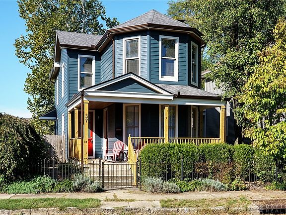 Step into over 1,700 square feet of beautifully updated living space, where original charm meets modern luxury. Nestled in the heart of historic Wright-Dunbar Village, this home welcomes you with a charming wrap-around front porch, accessed through a wrought iron gate—a perfect spot to relax and enjoy the front pollinator garden in summertime. Inside, the main floor offers a spacious formal dining room adjacent to an updated kitchen featuring refinished butcher block countertops, tile flooring, and stainless-steel appliances. The cozy living room, a convenient half bathroom, and a walk-in laundry room with plenty of pantry and storage space complete the first level. Upstairs, you’ll find three generously sized bedrooms and an updated full hall bathroom. Outside, the large, flat, fenced-in backyard is perfect for entertaining, with a spacious concrete patio and ample flowerbed expansion space for aspiring gardeners. A two-car detached garage sits at the rear of the property, easily accessible via a shared alleyway, offering secure parking and additional storage. This home has been meticulously maintained and thoughtfully updated, including: new siding, soffits, trim, and gutters (2025); new front porch banisters, railings, columns, and ceiling (2025); fresh paint throughout (2024-25); new concrete patio and sidewalks (2023); updated light fixtures and ceiling fans (2022); new roof (2021); new furnace and AC (2020); and much more! With its perfect blend of historic character, modern updates, and move-in ready condition, this gem in Wright-Dunbar Village is ready to welcome you home. Don’t miss your chance to make it yours!