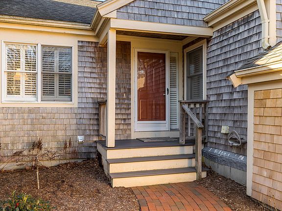 Here is your opportunity to enjoy one floor living in Kings Way, Cape Cod's premier condo community. Overlooking the 6th fairway and green, this 941 square foot N model has primary bedroom en-suite with a walk-in shower, guest bedroom, kitchen and laundry, dining and living areas, all on the same floor. The kitchen features custom cabinetry, stainless steel appliances and granite countertops. The living room has vaulted ceilings and there are hardwood floors throughout except in the kitchen and bathrooms. This unit has a composite deck and guest parking nearby. Additional updates include a new water heater (2023). One car garage enters directly into the kitchen/laundry area. Kings Way offers a golf course, restaurant, community meeting house, social center, post office, two pools, tennis and pickleball courts, bocce and year-round social activities.