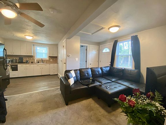 Single family home. 2 bedroom/1 bath with lake access rights. Vinyl siding. carpeting, vinyl plank flooring, new paint throughout and new lighting installed. Hot water on-demand heating system is highly efficient. Tiled mudroom with large closet and an additional double closet with washer and dryer hook-ups.Tiled front door entry. Bathroom has new vanity, new toilet, new mirror, new lighting, one piece tub/shower, large linen closet and vinyl plank flooring. Walk-in closet in bedroom. Pantry closet in kitchen.Additional closet in front entry. All New windows being installed this month. Open floor plan. Natural light. Private dead-end street. Private yard partially fenced. Exterior lighting. Ceiling fans. Landlord may consider a well behaved dog w/adjusted rent. All showings will be at Open House on 9/8/24 Sun 11am-1:00pm & 9/10/24 Monday evening 6-8:00pm There are duplicate photos of living room showing different furniture set up, same with bedroom 2 as one shows an empty room and another with furniture. Occupancy only. Tenant responsible for all utilities except sewer. Trash pick-up every week. Recycling pick up every other week. Access rights to the lake (kayaking, jet skiing, boating). Beach for residents. No smoking. Landlord may consider a well behaved dog w/adjusted rent. First, last and security and renters insurance required.