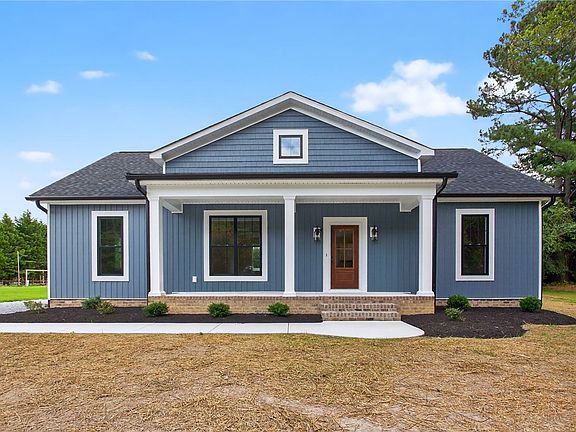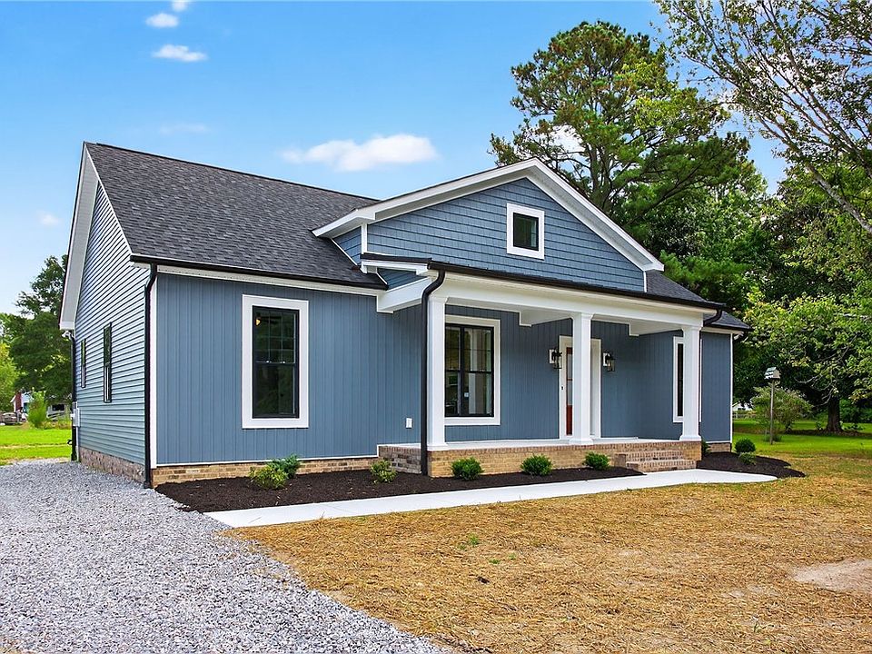 Location, Location, Location! Price Improvement on this Beautiful New MOVE-IN-READY Home with a convenient "in-town" location in the charming coastal village of Kilmarnock, VA and ready for new owners to enjoy. This gorgeous Cedar Creek model by Rock River Homes is a fantastic open-concept design and greets you with a welcoming front porch. The home has 3 large bedrooms, 2 full baths, a HUGE Great Room with vaulted ceilings, and a gourmet kitchen with a large prep island, stunning Merillat cabinetry and beautiful granite tops. The main level primary has a generous ensuite bath with oversized shower and a large walk-in closet and the 2 large guest rooms share a large hall bath. The chef in the family will love the open kitchen design - perfect for entertaining. There is a convenient rear entry door into the mud room with built-in drop zone bench, laundry area and easy access to the back yard. This home is filled with great finishes like luxury vinyl plank floors in the living areas and baths, granite countertops in the kitchen and baths, 9' ceilings, ceiling fans in all bedrooms and the great room, 6" baseboard trim, bullnose drywall, Delta faucets, conditioned crawl space and concrete porch and lead walk. All just a short bike ride or drive to the great shops and restaurants on Main Street Kilmarnock and just minutes to Town Park, the YMCA, Rappahannock General Hospital, Irvington's Farmer's Market and the Tides Inn Resort, local marinas, and of course The River! Come enjoy a Northern Neck lifestyle in this fabulous new home!