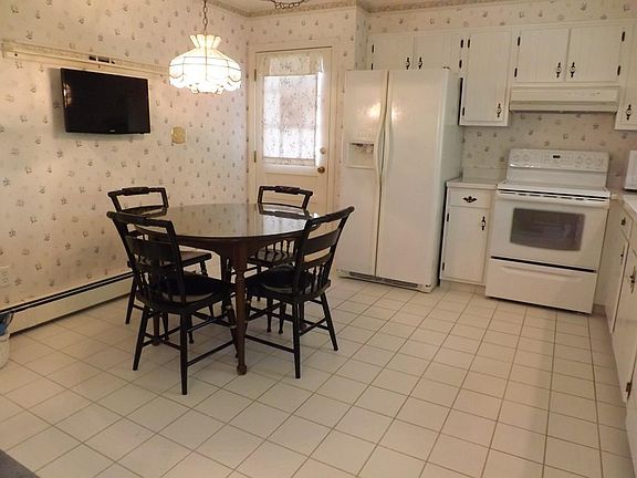 Nestled back off the road this immaculate one owner home has been lovingly maintained inside and out. Large eat in kitchen with ceramic tile is open to dining area with bright bay window overlooking the private wooded yard. Additional bay window in living room affords wonderful natural light. Beautiful brick fireplace that has never been used. Stunning updated full bath with cherry cabinets, ceramic tile and granite counter. Master has a full bath with convenient shower. Hardwoods and ceramic tile flooring throughout. Fantastic walk out basement with large picture window and additional fireplace that would make an awesome family room. Roof within 10 years, furnace, 2 yrs., maintenance free vinyl siding. Town utilities. This home is located in a great neighborhood nearby to Route 9, shopping and many of the schools!