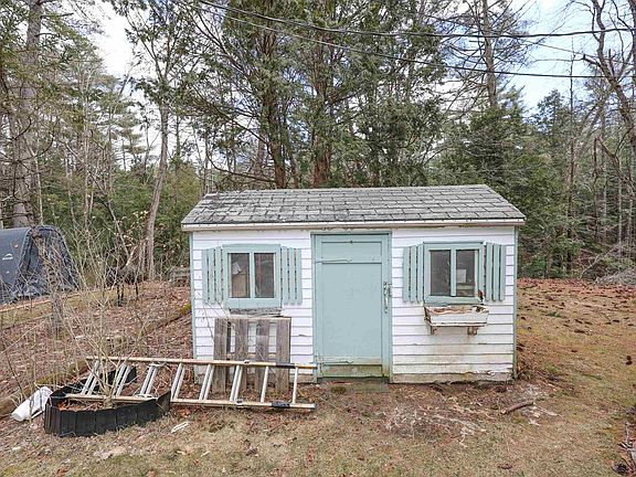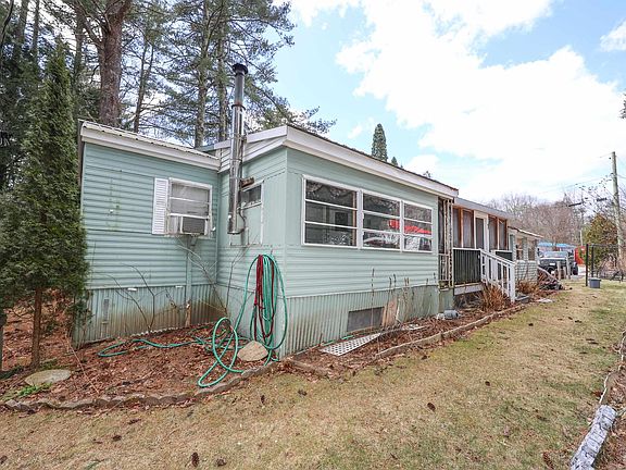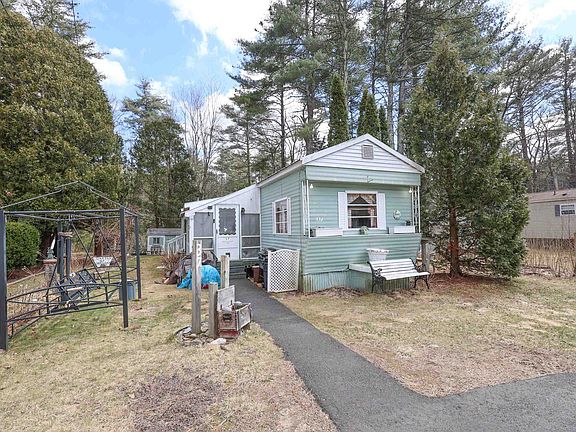 Just in time for Summer to enjoy the blooming perennials in the surrounding gardens. This home has many things to offer including the lot which it sits on, located on a dead end road, the bustling waters of Dudley Brook located to the rear, a freshly painted interior, 2 bedrooms, large living area, a mudroom, screened in porch, and a sitting area with a woodstove which will heat the entire home. The Dining area has lots of built in cabinets for extra storage. The Kitchen has a large pantry and titled floors. The large living room has plenty of space with a nice window seat. The main bedroom has large windows looking over the backyard and a large closet. Park approval is required. Dogs are allowed. Schedule a showing before it is too late.