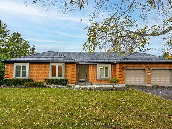 Discover the perfect blend of small-town charm and big-city convenience at 37 Outer Drive in the heart of Lambeth, London, Ontario. This executive bungalow sits proudly on a rare 0.5+ acre lot-a true gem within city limits-offering privacy, space, and luxury living both inside and out. Step inside this over 2,100 sq. ft. main-floor bungalow, featuring an open-concept layout ideal for entertaining and family living. Large windows fill the home with natural light, while the spacious living and dining areas flow seamlessly into a chef-inspired kitchen overlooking the incredible backyard. The fully finished basement adds even more living space, complete with a wet bar, recreation area, and room for guests or extended family-perfect for movie nights or hosting gatherings. Outside, experience your very own backyard oasis. Enjoy summer days by the inground swimming pool or unwind while walking your landscaped grounds admiring the gardens and mature trees. The convenient outdoor bathroom keeps wet feet out of the house, while the expansive yard provides endless possibilities for entertaining or relaxation. Located in one of Lambeth's most sought-after communities, this property offers tranquility, space, and comfort-just minutes from shopping, dining, highways, and top-rated schools.