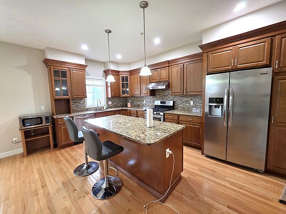 Welcome to this sun-filled 3BR home in Union Point with additional room in lower level! The main floor features an open layout with a spacious living room, huge outdoor balcony, gas fireplace, hardwood floors, and a modern kitchen with upgraded cabinets, granite counters, stainless steel appliances, island, pantry, and deck perfect for morning coffee or evening wine. The primary suite offers two closets and a double vanity bath. Upstairs are two additional bedrooms and a full bath, plus a large office/guest room on the lower level. Enjoy a vibrant community with walking/biking trails, sports complex, dog park, farmer's market, and more. Easy commuting with the Commuter Rail just a short walk and quick access to Rt. 3. Available 9/15/2025.