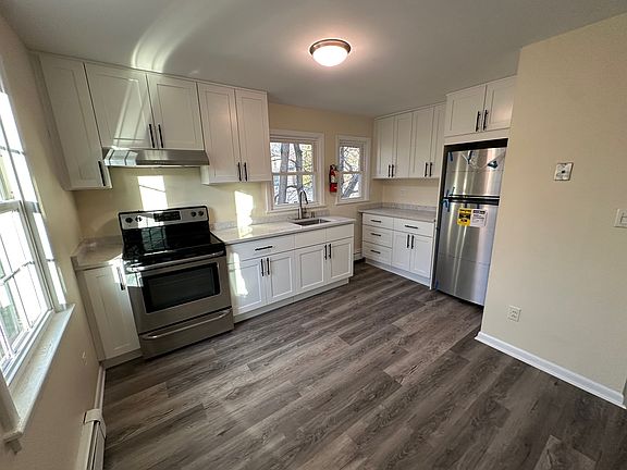 Newly renovated 3BR, 2.5 Bath 2nd floor apt in 3 family home. Newer primary bath & pr & Just completed new large eat-in kitchen with SS appliances. Freshly painted T/O with updated flooring. Flexible layout & parking for 2 cars. Only blocks to town center, NYC train, bus & schools. Heat, water & gas included, tenant responsible for snow removal of their 2 parking spots.