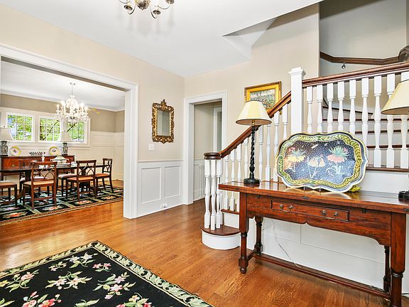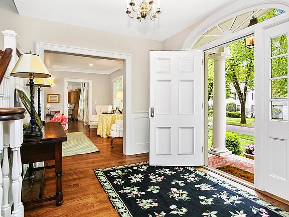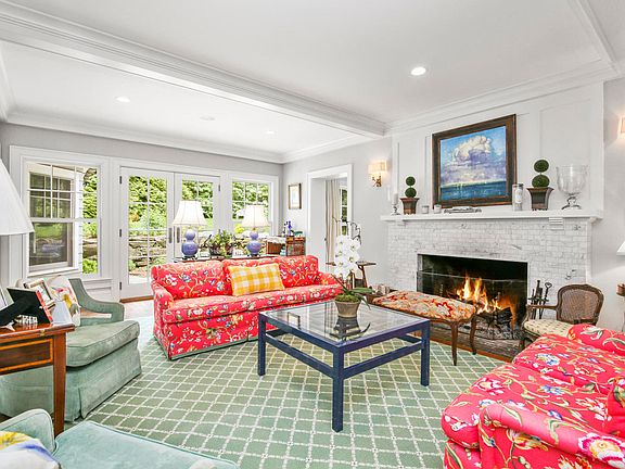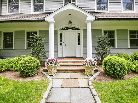 Turnkey five-bedroom Colonial boasts stunning, tastefully renovated interior on a desirable in-town street with private stone terrace and professionally landscaped backyard. Ideal for entertaining with French door access from main rooms to private patio. Features elegant living room with fireplace; comfortable den with white paneled walls, bookcases and three exposures; tall wainscoting in dining room; wet bar/pantry; chic marble-clad kitchen with counter seating and sun-drenched breakfast nook that opens to family room and mudroom. Inviting master suite with his and her walk-in closets, marble bath, guest suite with bath, two bedrooms, hall bath and laundry room complete the second floor. Top floor provides playroom, bedroom, full bath and gym or home office. Detached 2 car garage