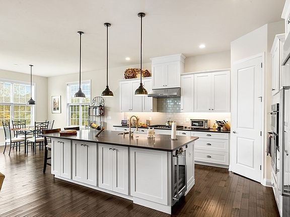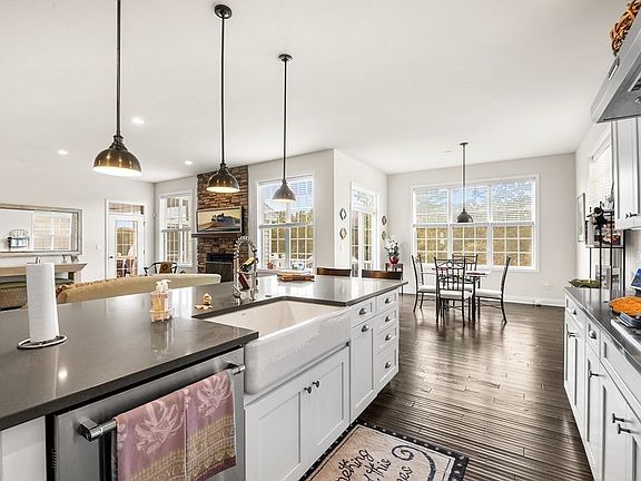 Discover luxurious living in the prestigious Emerald Pines over 55 community. This exquisite ranch-style home offers 3-bed&3-bath, gives a seamless blend of elegance and comfort. The chef's kitchen boasts an oversized island with a farmhouse sink, a wine fridge, and a custom pantry, equipped with high-end appliances. The open floor plan ensures a complete view of the home, including the breakfast area, dining room and living room with a cozy fireplace. Enjoy indoor-outdoor living with access to a screened-in deck and an exterior deck, perfect for entertaining while savoring tranquil views. Primary Suite with large walk-in closet with custom shelving and stunning primary bathroom with soaking tub. An additional bedroom with full bath directly outside and office space round out main level. On the lower level, there is additional living space with bedroom, bathroom and kitchen, great for wet bar or additional prepping area! 2-car garage & 2 extra storage areas adding convenience.