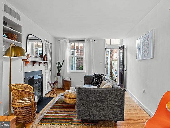 Tucked away in a storybook setting in the heart of Queen Village, this picture perfect Philadelphia end-of-row trinity home offers maximum charm and comfort on a secluded, gated courtyard with twinkle lights that set the mood all year long. Step past the front garden to a surprisingly spacious first floor with a cozy gas fireplace installed in 2025, built-in shelving, and a clever fold-down dining table. The newly renovated kitchen is a showstopper, with butcher block countertops, seafoam shaker cabinets, bold tile, stainless steel appliances, and a reverse osmosis water filtration system. Original wood floors grace the entire home from bottom to top and lend an authenticity and warmth that simply cannot be replicated. Out back, a private brick-paved patio extends your living space outdoors- perfect for enjoying steaming hot cups of coffee on quiet fall mornings, or entertaining family and friends all year long. Up the turned staircase, the second floor opens to a large bedroom with an exposed brick wall and a built-in desk. A large walk-in closet and a deep bonus cabinet tucked in the wall make storage a breeze. Enjoy the incomparable feeling of having a place for everything and everything in its place! Speaking of which, there's a whole unfinished basement for overflow, in case the need arises. The ensuite bathroom mixes vintage charm and convenience with a blush enamel tub-shower combo, stacked washer/dryer, and yet more closet space for all of your lotions and potions. This is a rare find in the city: private, stylish, and thoughtfully updated: new roof, new kitchen, freshly painted, newly installed gas fireplace... all in a magical courtyard setting. Located in Meredith catchment just off the buzz and bustle of 4th St in a quiet alcove all your own.
