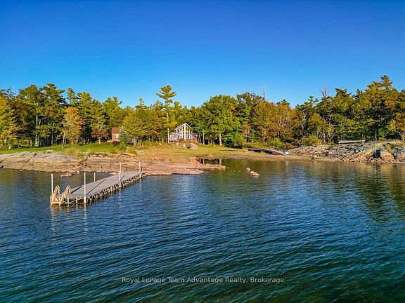 This stunning 3-bed, 2-bath Viceroy home sits on 3.2 acres of natural beauty with approximately 196 feet of straight-line frontage and over 500 feet of west-facing shoreline on pristine Georgian Bay providing unforgettable sunsets that change with the seasons. Whether you're looking for a full-time home or a four-season cottage this fully winterized property has everything you need including a large, direct-wired backup generator ensuring peace of mind especially in winter. Year-round access is provided by a municipally maintained road with the last mile privately plowed by residents. The home comes turnkey with tasteful furnishings and everything you need to start enjoying life on the Bay. Recent upgrades include: New (June 2025) stainless steel appliances in a refreshed kitchen, wood stove for those chilly evenings, quality laminate flooring throughout, fully insulated crawl space with newer pump, pressure tank, filtration and UV light, rebuilt oversized deck, extending your living space outdoors. Inside cathedral ceilings and scenic picture windows flood the great room with natural light and frame sweeping water views. The loft has been enclosed making it a versatile third bedroom or family room complete with two queen pullout sectionals. For additional guests there's a charming queen-size bunkie. A 40-foot rolling dock accommodates a power boat and can easily be adjusted to changing water levels. The spacious gently sloping lot is perfect for outdoor games and gatherings and is located near Killbear Provincial Park. For convenience two general stores, two excellent restaurants and several marinas are nearby. Parry Sound is just a short drive away offering amenities, a district hospital and the world-renowned Festival of the Sound each summer.