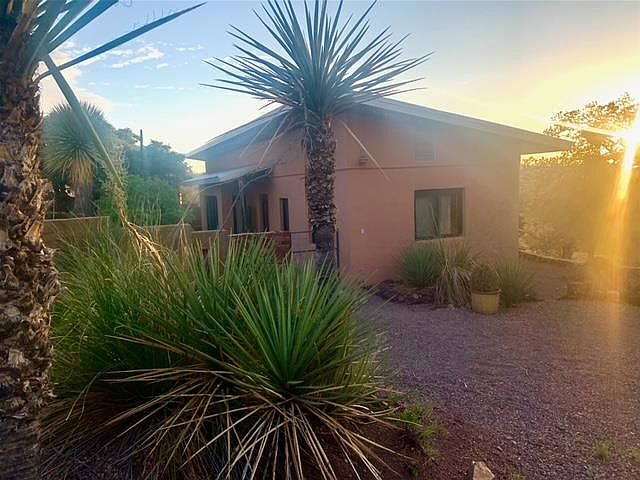 Peace and quiet abound in this energy efficient home surrounded by gorgeous landscaping adorned with native trees and blooming cactus as well as a stunning oak beside a 3 tiered tranquil streaming rock waterfall. Watch the wildlife graze from one of a kind screened in viewing porch. Stunning mountain views from every window in this 2 bedroom 2 bathroom secuded home with a bonus sitting room or office and an extra large walk in master closet all on 10.8 acres. Just too many features to list!