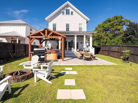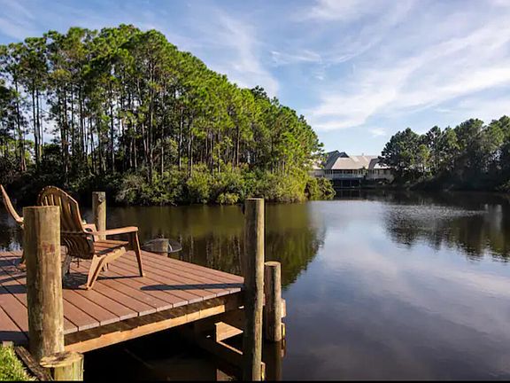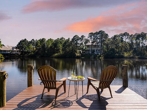 NO HOA + WATERFRONT + 10% Purchase Option! Introducing a lavishing WATERFRONT masterpiece with access to Choctawhatchee Bay, perfect for full-time luxury living or a short-term rental. Breathtaking views of the lake and bay grace every bedroom, 3 offices + the 360-degree tower offering unparalleled panoramic vistas. Designed to impress, this custom-built home boasts travertine flooring, a marble master bath, accent walls, and grand beams. The gourmet kitchen shines with SS appliances, quartz countertops, and an oversized island. Revel in the indulgence of the expansive back porch with fire pit, private dock, and Chicago-style brick wall. Boasting 4-bedroom, 5 bath + 3 offices, this Florida cottage-inspired home exudes elegance with its hand-crafted wooden ceilings + custom design Experience the pinnacle of lakeside luxury in this stunning custom-built home, where every room offers sweeping lake and bay views At the crown of the home, a remarkable 360-degree tower reveals breathtaking panoramas of the entire landscape. Step outside to a beautifully crafted wooden ceiling on the expansive back porch, complete with a cozy fire pit, perfect for gatherings. Indulge in the spacious his-and-hers closets located in the master and high-end custom appliances this residence truly offers every amenity a family could desire for exceptional living.
