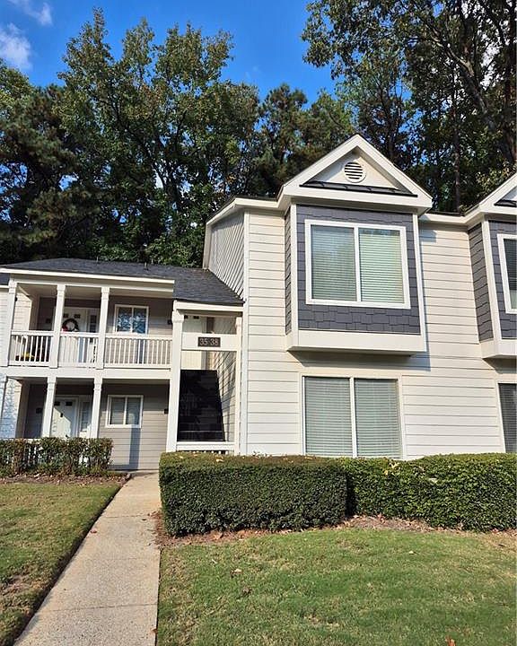 Excellent neighborhood not far from Truist Park and the Braves where the action starts-So many fun places to eat and enjoy the weekend then escape to your quiet condominium retreat for a superb rest to do it all over again- Hillsdale offers great amenities inc pool, tennis court, fitness center and beautiful clubhouse- This unit has no steps as no carrying groceries up a flight of stairs-Spacious living area opens to covered patio on warm days when the breeze zips by-This unit offers 1404 sq ft of finished space and includes washer/dryer-Intimate dining room holds table for 8 and offers French door to the patio-Unit has 1 assigned parking space directly in front and 1 unassigned space for guests, Patio offers private area to enjoy outdoor relaxation under the stars- 2 good sized bedrooms each with bath and good closet space-