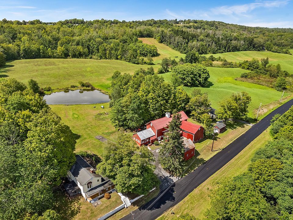 Nestled in a peaceful rural setting, this inviting gentleman’s farm offers over 3 acres of land, complete with a tranquil pond, multiple dwellings, and an array of outbuildings. This exceptional property offers a perfect blend of rustic charm, functionality, and versatility and is perfect for those looking to embrace country living with room to grow a home-based business. The heart of the property is a warm and welcoming 3-bedroom farmhouse, full of rustic character and practical charm. The spacious layout includes a country kitchen, cozy living spaces, and generous bedrooms, making it ideal for family living or hosting guests. A separate 2-bedroom cottage offers additional living quarters—perfect for multi-generational living, rental income, or guest accommodations. Entrepreneurs, tradespeople, and creatives will appreciate the agricultural zoning which permits home businesses—a rare and valuable feature. The detached garage with an attached workshop is well-suited for a mechanic, woodworker, or hobbyist, while the large barn offers ample space for equipment, storage and recreation. The carriage house provides covered parking for two more vehicles, with ample space for more storage above. Whether you’re looking to run a small-scale agricultural operation, work from home, or simply enjoy the quiet beauty of the countryside, this versatile property delivers. With room to roam, a peaceful pond, and infrastructure already in place, it’s the perfect balance of lifestyle and opportunity.
