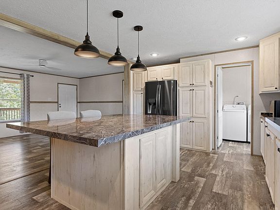 Enjoy peaceful country living just a short drive from Trenton, GA and only 25 minutes from Chattanooga, TN. Built in 2019, this well-maintained 3 bed 2 bath manufactured home (permanent foundation) sits on 3.7 private acres and offers spacious living that features upgrades throughout, Smart home features enhance the functionality and connectivity of this residence, allowing you to control various aspects of your home with ease. From the temperature to lighting, you can create the perfect ambiance at the touch of a button. outdoor amenities that optimize the scenic acreage. Step inside to an open-concept floor plan, beautiful kitchen with large island/bar with storage, prep area and eating area. The primary suite has sizable walk-in closet and a luxurious en-suite bath with double vanity. Outside enjoy the best of rural living: an above-ground pool with a covered patio, a large covered front porch with scenic views, and multiple outbuildings, including a chicken coop. A second driveway leads to a cleared area with its own septic system and water access which is ideal for a second home, guest house, or workshop. In addition, there is a wooded area for additional privacy or building site. Call to schedule your showing today!