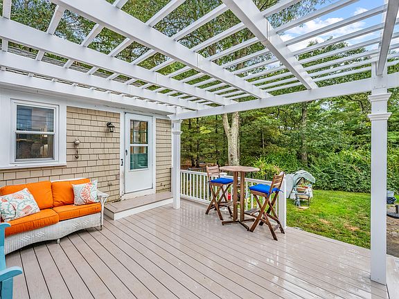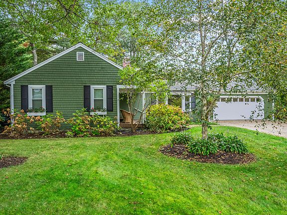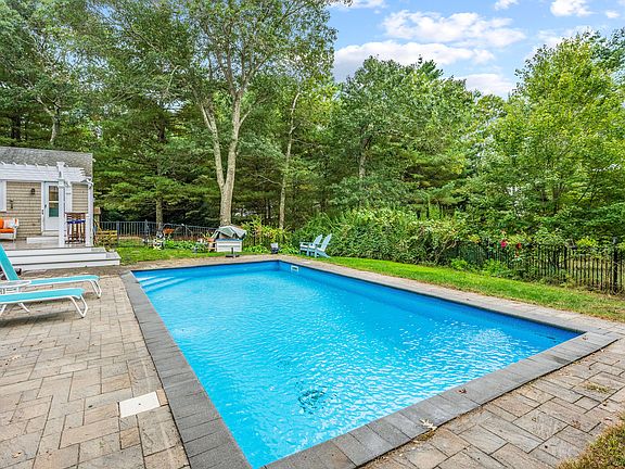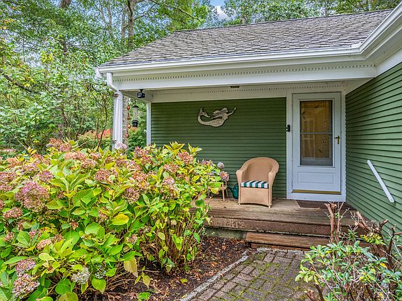 Home Sweet Home! This beautiful ranch is nestled on an acre lot at the end of a cul-de sac, around the corner from golf and conservation trails. It features great entertaining and relaxing space inside and out, including a refreshing salt water pool! The covered front porch welcomes you into the inviting living areas, including a spacious living room, sun room, and multiple options for dining. There are 3 bedrooms, including a primary with en suite full bath. Hardwood floors, central AC, and newer appliances. The attached garage and full basement are perfect for storage, and there are also outbuildings which make the ideal space for a workshop or pool house. Outdoor shower and additional parking for a boat or equipment. Dining, shopping, and sought after beaches nearby make this the perfect year round home or vacation getaway.