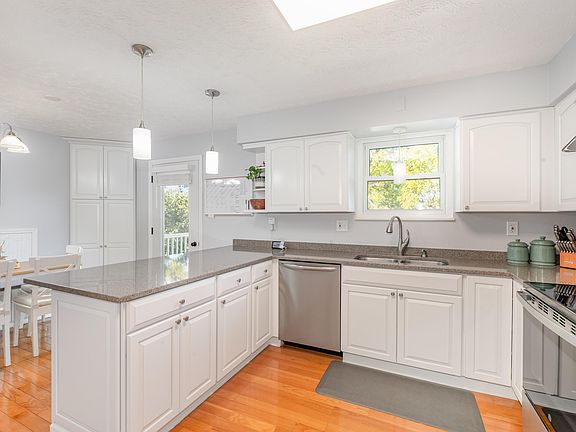 Step into this beautifully updated 3 bed, 2 full bath ranch home on over a half acre. This home is perfect for entertaining inside and out. The main floor is bright with an open layout and hardwood floors throughout. the kitchen is newly updated with white cabinetry, stainless steel appliances, breakfast bar, double pantry, built in bench seat and granite countertops. Hybrid heating system for main floor. Lower level offers an entertaining space, full bathroom with a shower, walkout to covered patio, backyard, large storage area and garage. Large lot with 2 storage sheds. Playset included. Don't let this one pass you by!