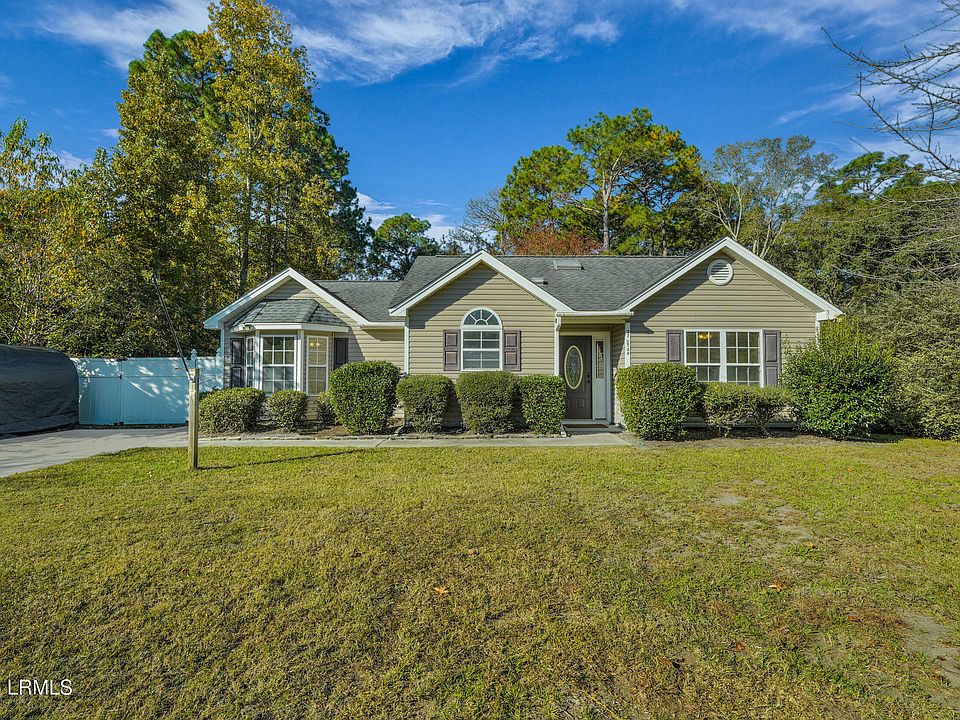 Located just 10 minutes from historic downtown Beaufort and 25 minutes from Hunting Island Beach, this 3 bedroom, 2 bath home offers approximately 1,200 sq/ft of living space on a .3-acre lot. The split floor plan features the primary bedroom on one side and two additional bedrooms on the other. An open layout connects the kitchen, family room, and outdoor patio, making entertaining effortless. The large, fully fenced yard, mature landscaping, and storage shed add to the home's functionality.