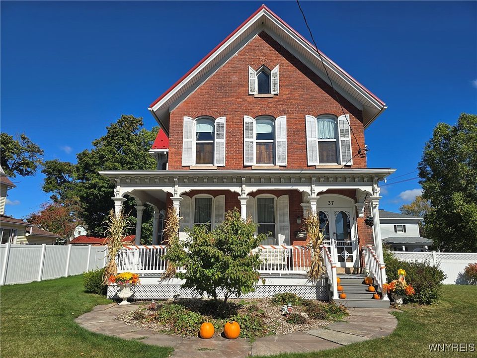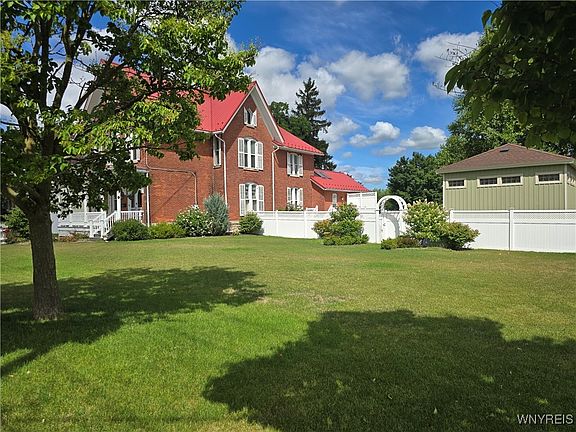 Inside, updated electric, plumbing, roof and back up sump pump, basement has been professionally heightened with a concrete floor, making it a very modern basement and some replacement windows add peace of mind. Located within walking distance to Roy-Hart schools and all village amenities, this one-of-a-kind property combines historic charm with modern lifestyle features. Showings begin immediately.