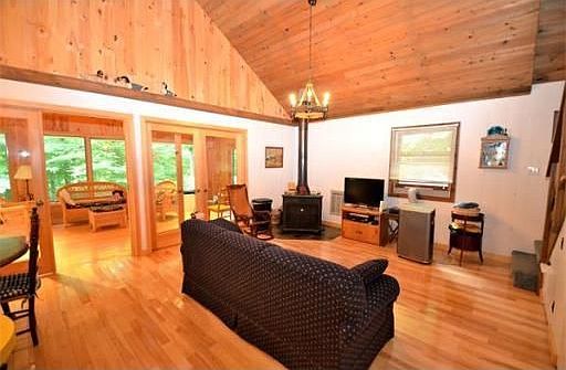 Wildwood Country home with spacious rooms for family and friends. Open plan living, dining and kitchen with Cathedral ceilings. Full use year round enclosed porch, Family room with door to outdoor patio. Enjoy 2 non-motor boat lakes, tennis, hiking trails, five sandy beaches and more.