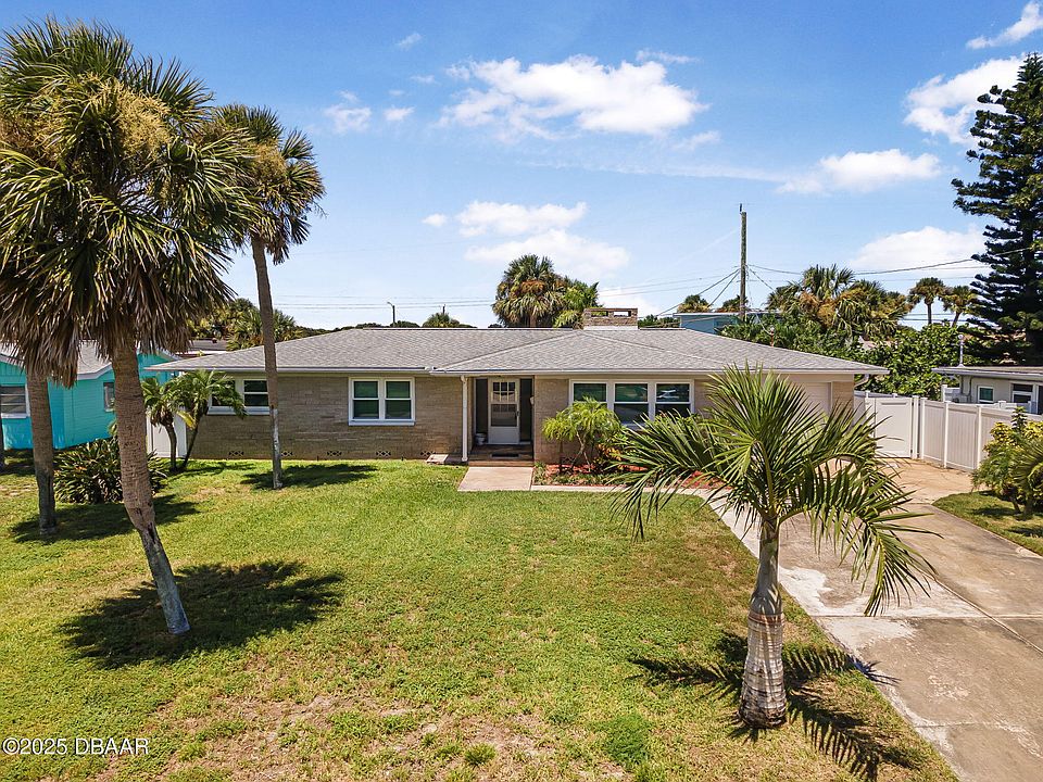 Old Florida lifestyle with guest suite! 2 blocks to the beach and 1 block to the intracoastal waterway. Solid block construction with a low risk flood zone. The well maintained home has a spacious family room, larger kitchen with ample kitchen cabinets, hardwood and stone tile floors, living room fireplace and oversized screened porch. The longer double wide driveway allows for ample parking including space for a boat or RV. Plus a one car garage 24' deep with an additional commode and sink in the garage. Double pane impact windows, 2020 roof, 2023 hot water heater, fully fenced back yard, and all appliances included. Behind the main house is a guest suite 15'x15' with shower, toilet and sink, kitchenette, and 2 Murphy beds. This is ideal for guests, a craft room, The voluntary association owns a fishing dock and boat launch area at the end of the street on John Anderson Drive. Launch your kayaks or boat, or just watch the sunset from the community dock. Community Beach walkover at A1A for a day at the beach. Priced to sell!