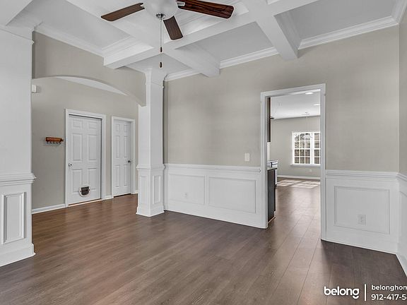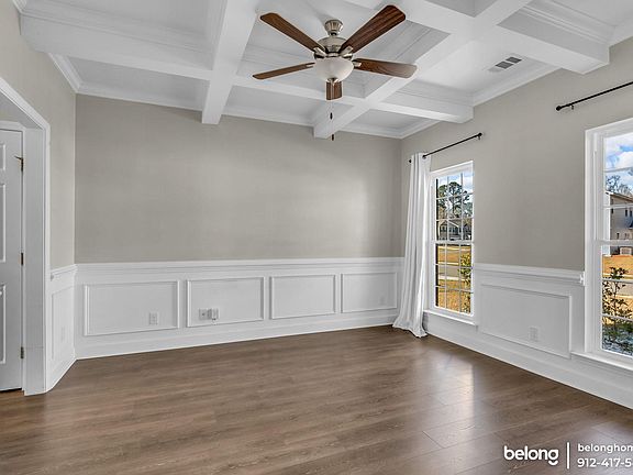 Welcome to your future homea spacious retreat designed with modern comforts and elegant touches. As you step inside, you'll be greeted by an open floor plan accentuated by 9-foot coffered ceilings and luxury vinyl plank flooring throughout the first floor. Large windows bathe the space in natural light, while the gourmet kitchen stands out with its granite countertops, stainless steel appliances, and 42-inch cabinets. This home offers 5 bedrooms, including a versatile bonus room with French doors, perfect for a theater or playroom. The owner's retreat boasts a double tray ceiling, a custom walk-in closet, and a luxurious bathroom equipped with granite dual vanities, a separate shower, and a soaking tub. Outdoor living is equally impressive with a screened porch and a fenced backyard. Additional features include a garage with storage shelves, providing practical solutions for your storage needs. Situated in a quiet and friendly neighborhood, just minutes from shopping, dining, and the Hunter Army Airfield. A short drive will take you to Pooler and the historic charm of downtown Savannah, where you can explore cultural landmarks and vibrant city life. History buffs will appreciate the nearby Wormsloe Historic Site, where you can explore Georgia's colonial past amidst picturesque surroundings. Additionally, the scenic Forsyth Park provides a beautiful setting for leisurely strolls and community events. *Two pets allowed. Pet weight limit is 20lbsif your pet exceeds this, please reach out to see if we can accommodate! *Our homes come as-is with all essentials in working order. Want upgrades? Request it through the Belong app, and our trusted pros will take care of the rest.